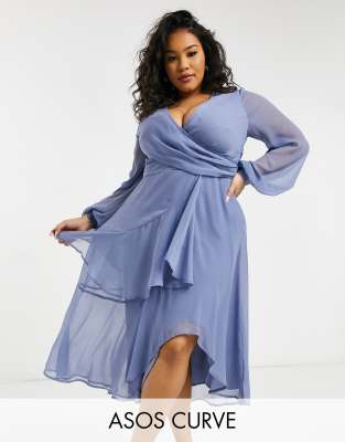 Asos curve midi dress clearance, ASOS DESIGN Curve wrap waist midi dress clearance