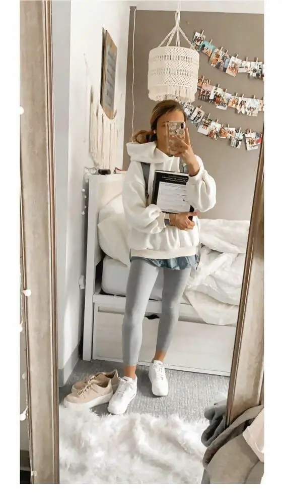 - Light gray leggings outfit