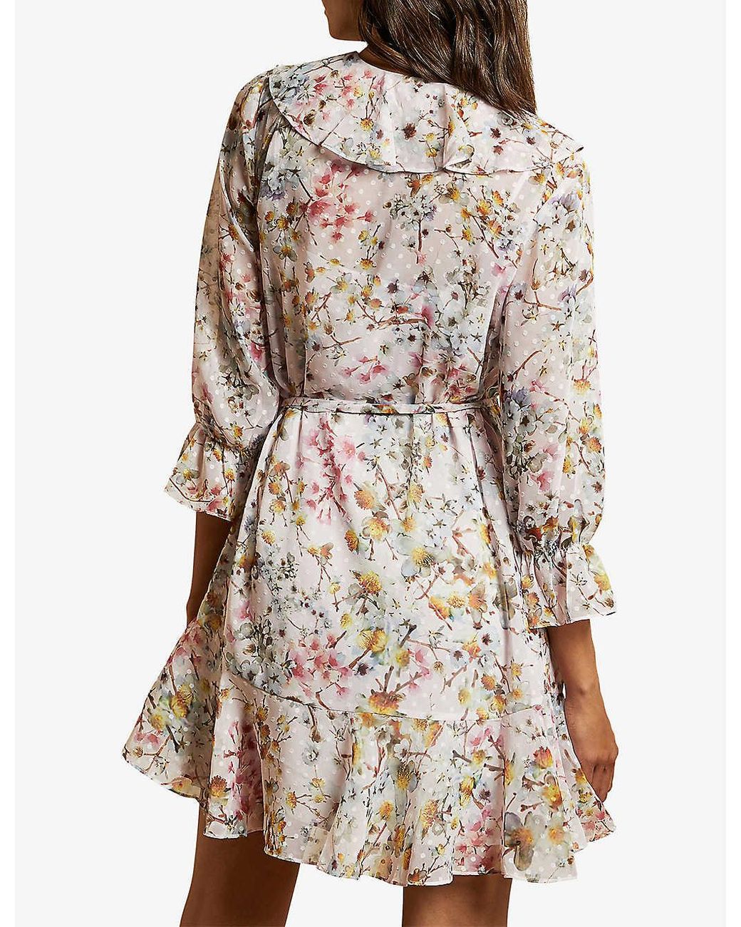 Ted baker gracye dress clearance, Ted Baker Gracye Jasmine-print Ruffle Crepe Wrap Dress in Pink | Lyst clearance
