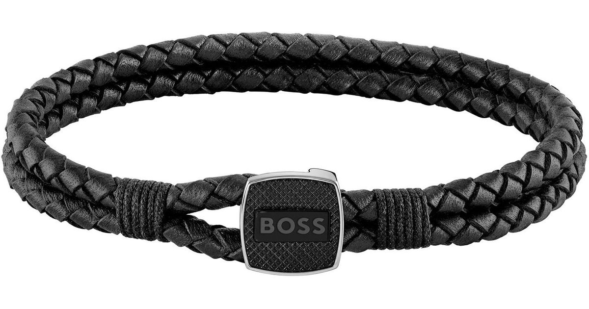 Hugo boss leather bracelet mens clearance, BOSS by HUGO BOSS Seal Braided Leather Bracelet in Black for Men | Lyst clearance
