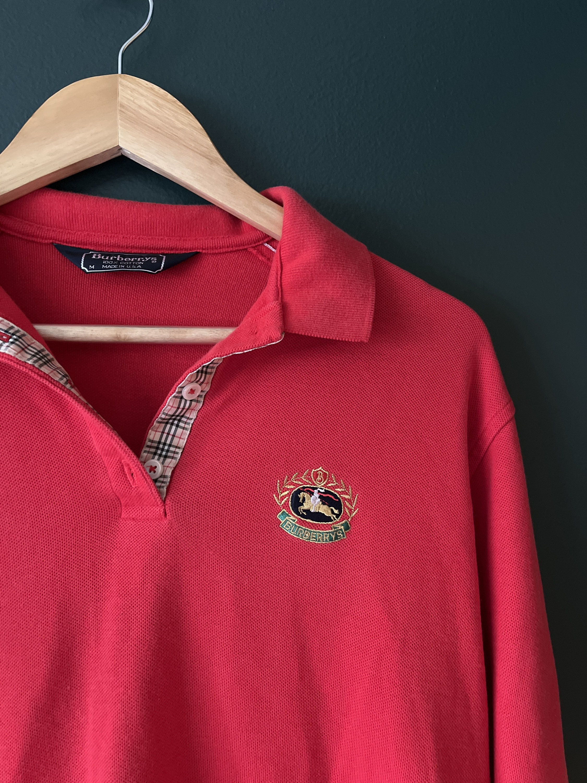 - Burberry red long sleeve polo