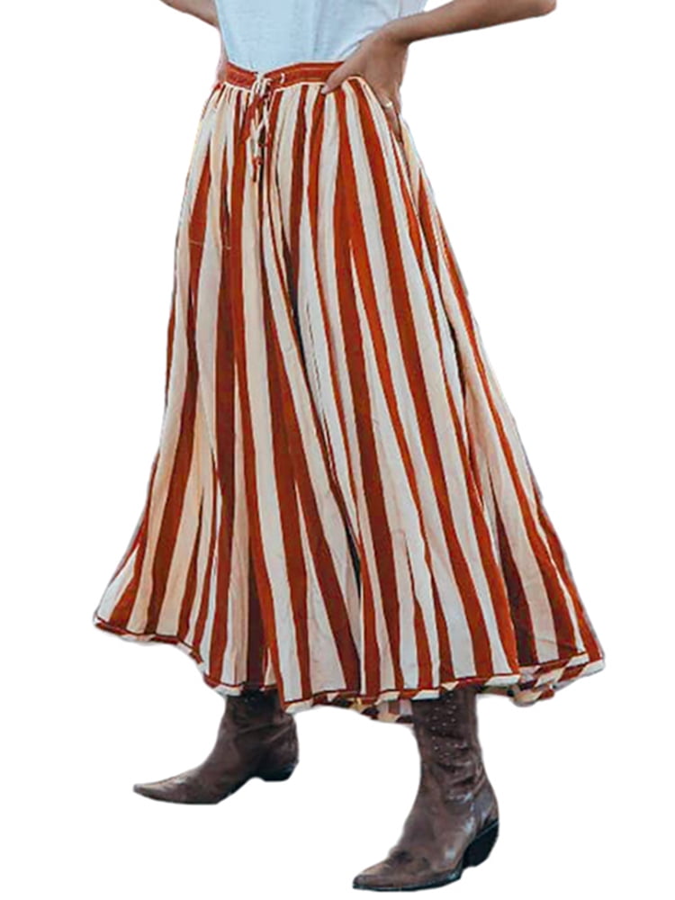 Elasticated skirts plus size clearance, ZANZEA Women's Drawstring Elastic Waist clearance