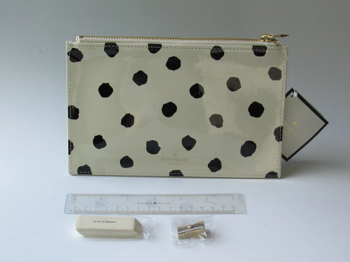 Kate spade gold dot pencil case clearance, Kate Spade Confetti Dot Pencil Pouch Tech Case Zipper Travel Designer Cream Gold | eBay clearance