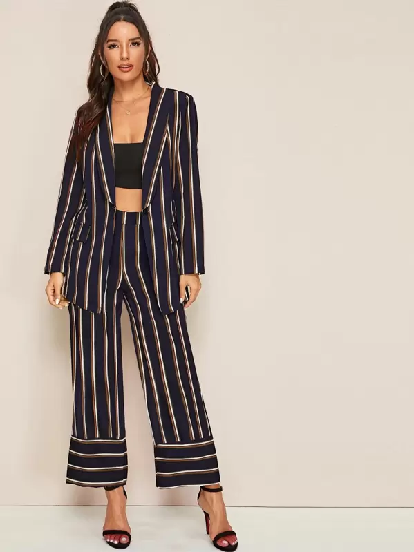 Blazer and palazzo pants clearance, SHEIN Shawl Collar Flap Detail Striped clearance