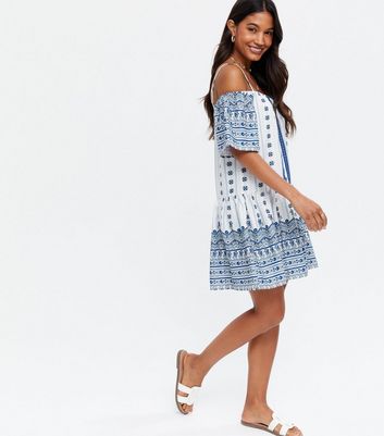 Blue tile print dress clearance