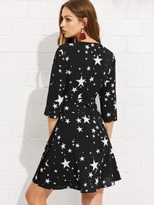 Star print wrap dress clearance
