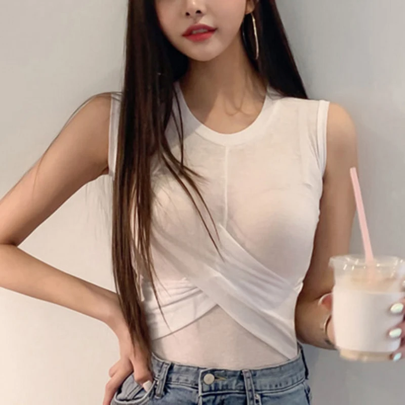 See through white tank top clearance, Crop Top Sleeveless Women Sexy Basic clearance