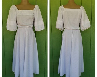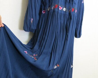 Hippie peasant dress clearance, 1970s blue floral print cotton hippie clearance