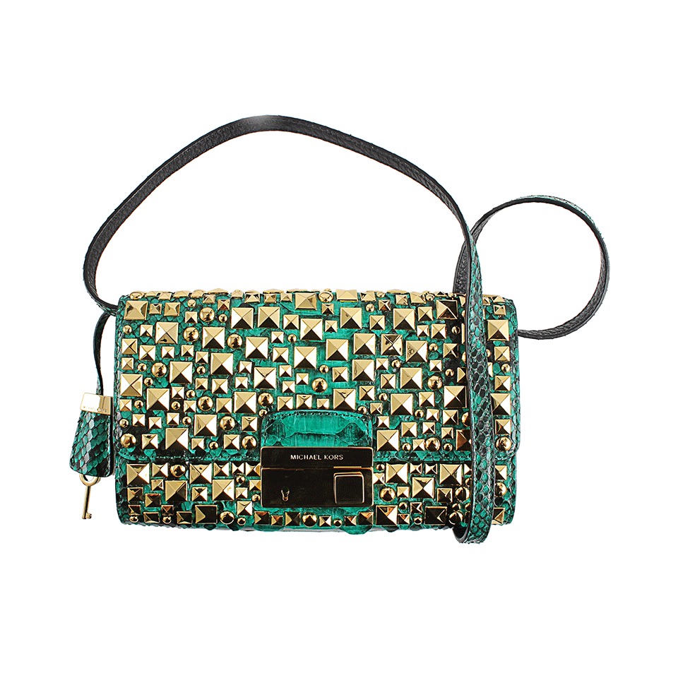 Michael kors green clutch bag clearance, Michael Kors Python Gia Stud Clutch in clearance