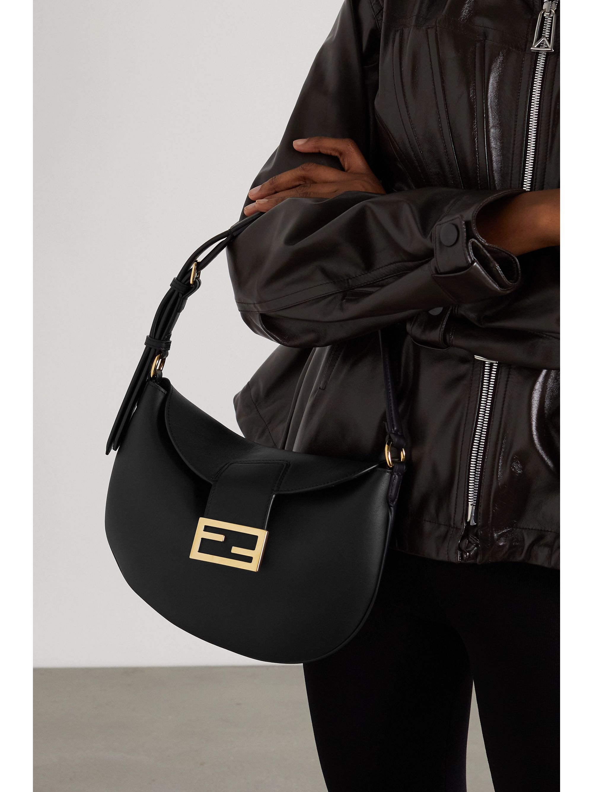 - Fendi black leather shoulder bag