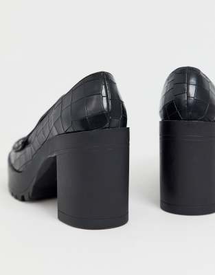 - London rebel chunky platform shoes in black croc clearance