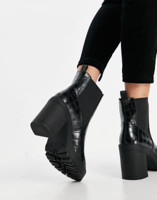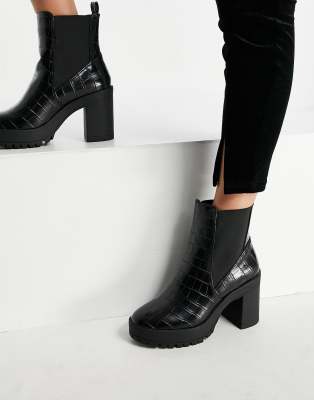London rebel chunky platform shoes in black croc clearance, London Rebel Platform chelsea boots in clearance