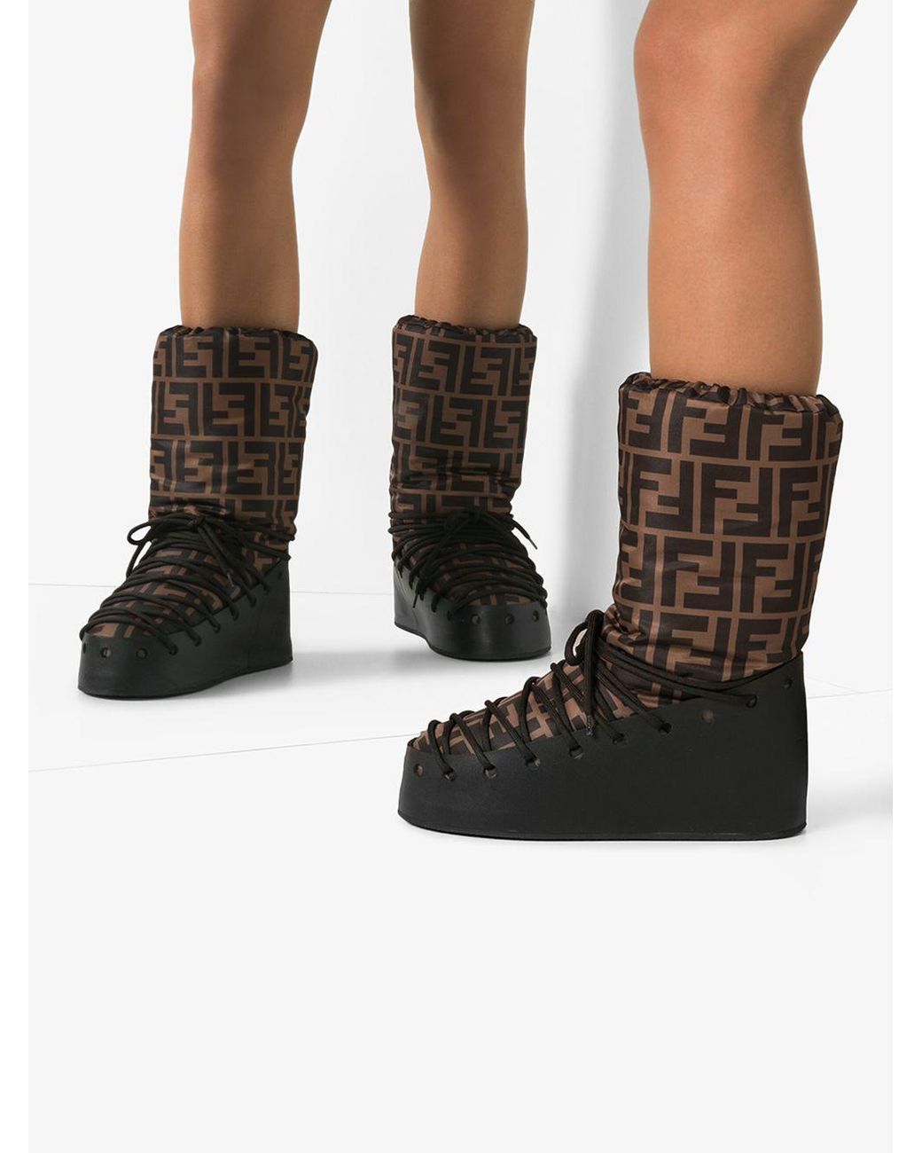 Moonboot fendi clearance, Fendi Ff-print Lace-up Moon Boots in Brown | Lyst Australia clearance