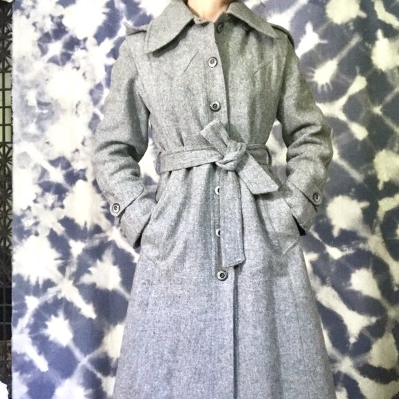 - Grey tweed trench coat sold
