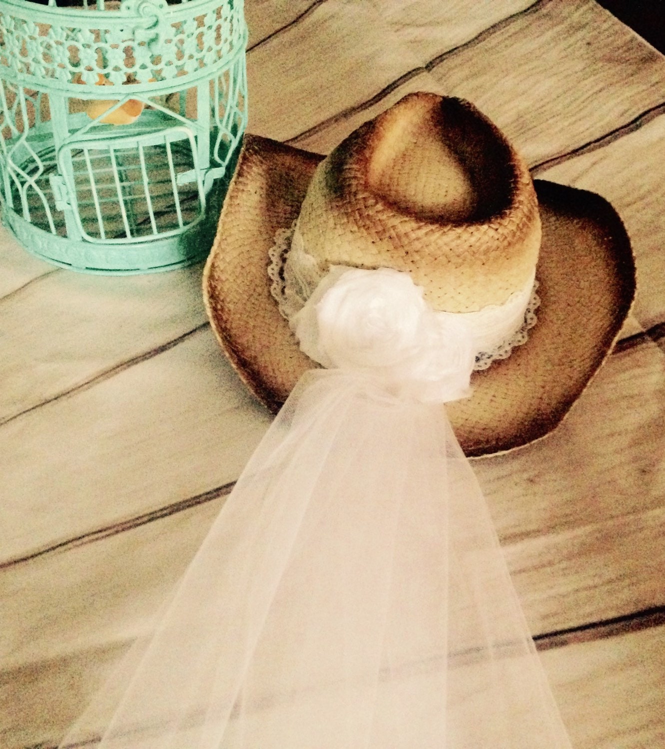 Bachelorette cowboy hat with veil clearance, Woven Bride Cowboy Hat with Veil clearance