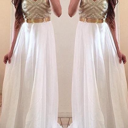 Gold top white bottom prom dress clearance, White Prom Dresses, Gold Prom Dress clearance