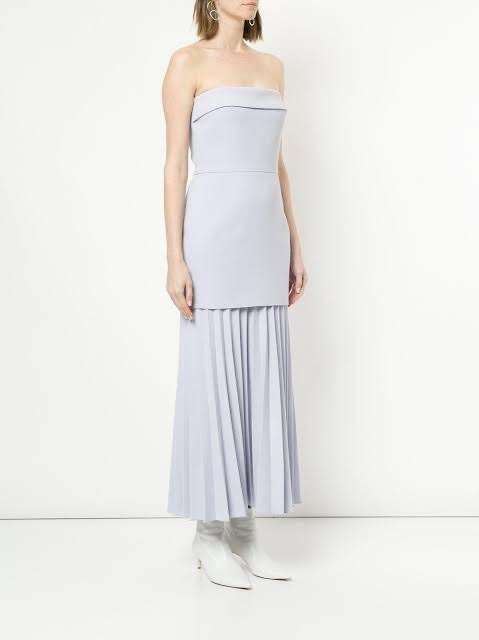 - Linear crepe pleat strapless dress sold