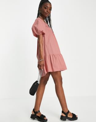 Cotton poplin mini dress clearance, Influence Tall puff sleeve cotton clearance