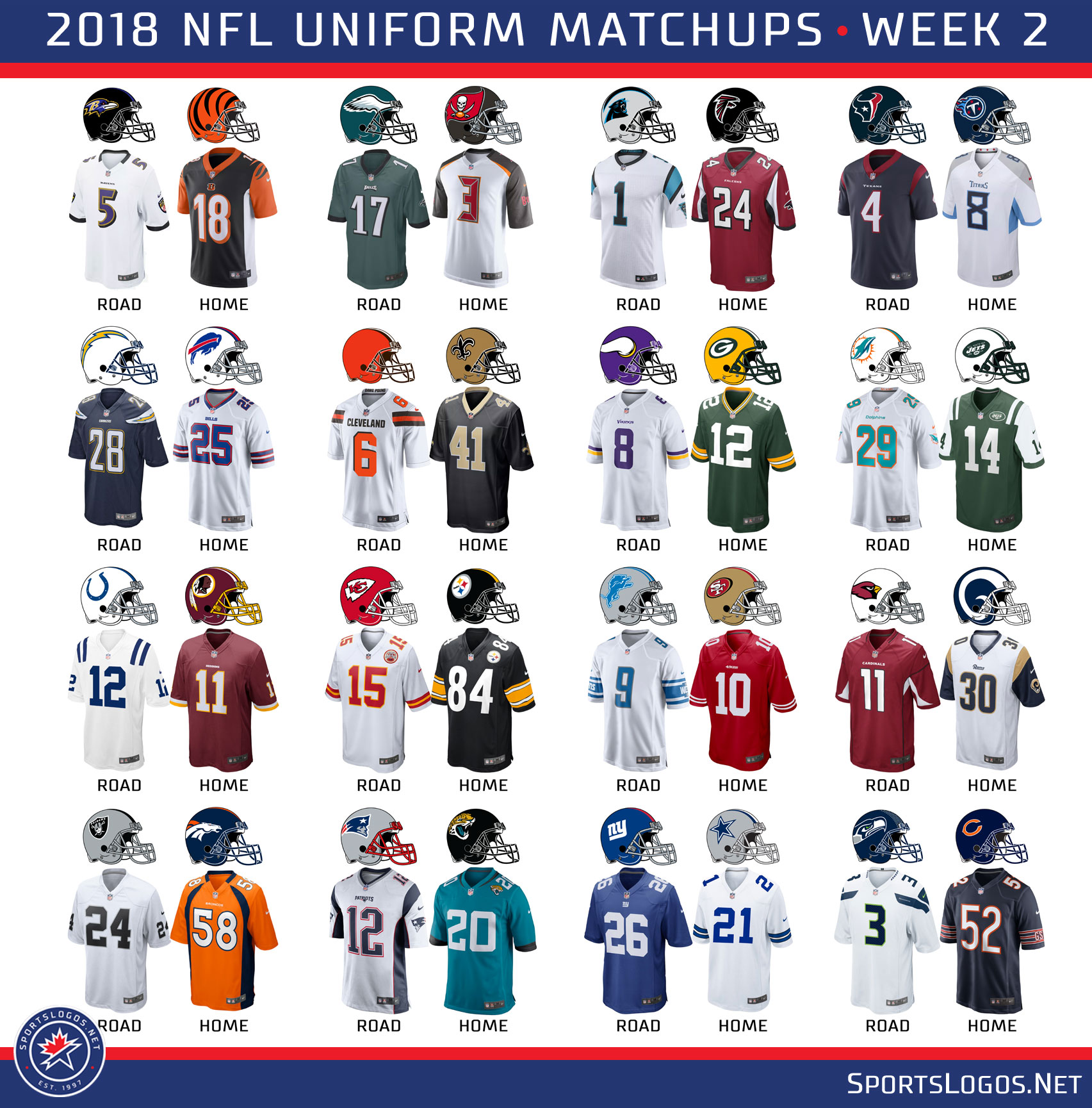 How much does a nfl jersey cost clearance, 2018 NFL Week 2 Uniform Matchups â SportsLogos.Net News clearance