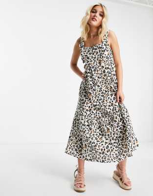 Animal print dungaree dress clearance, ASOS DESIGN dungaree midi sundress in clearance