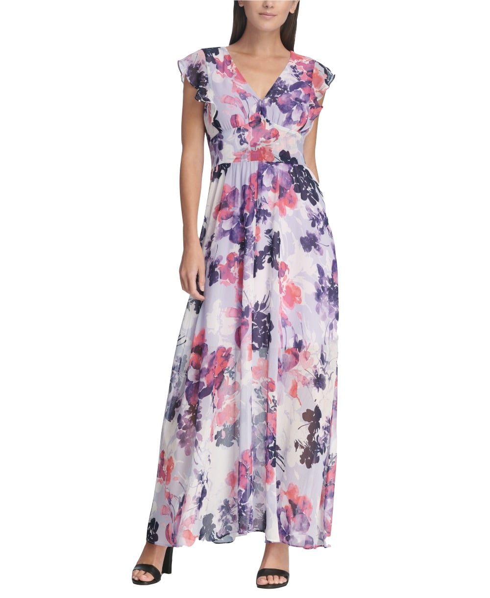 Dkny floral dress clearance, Dkny Floral Womens Chiffon Ruffle Cap clearance