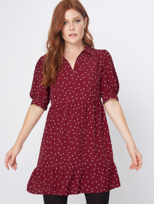 - Burgundy and white polka dot dress clearance