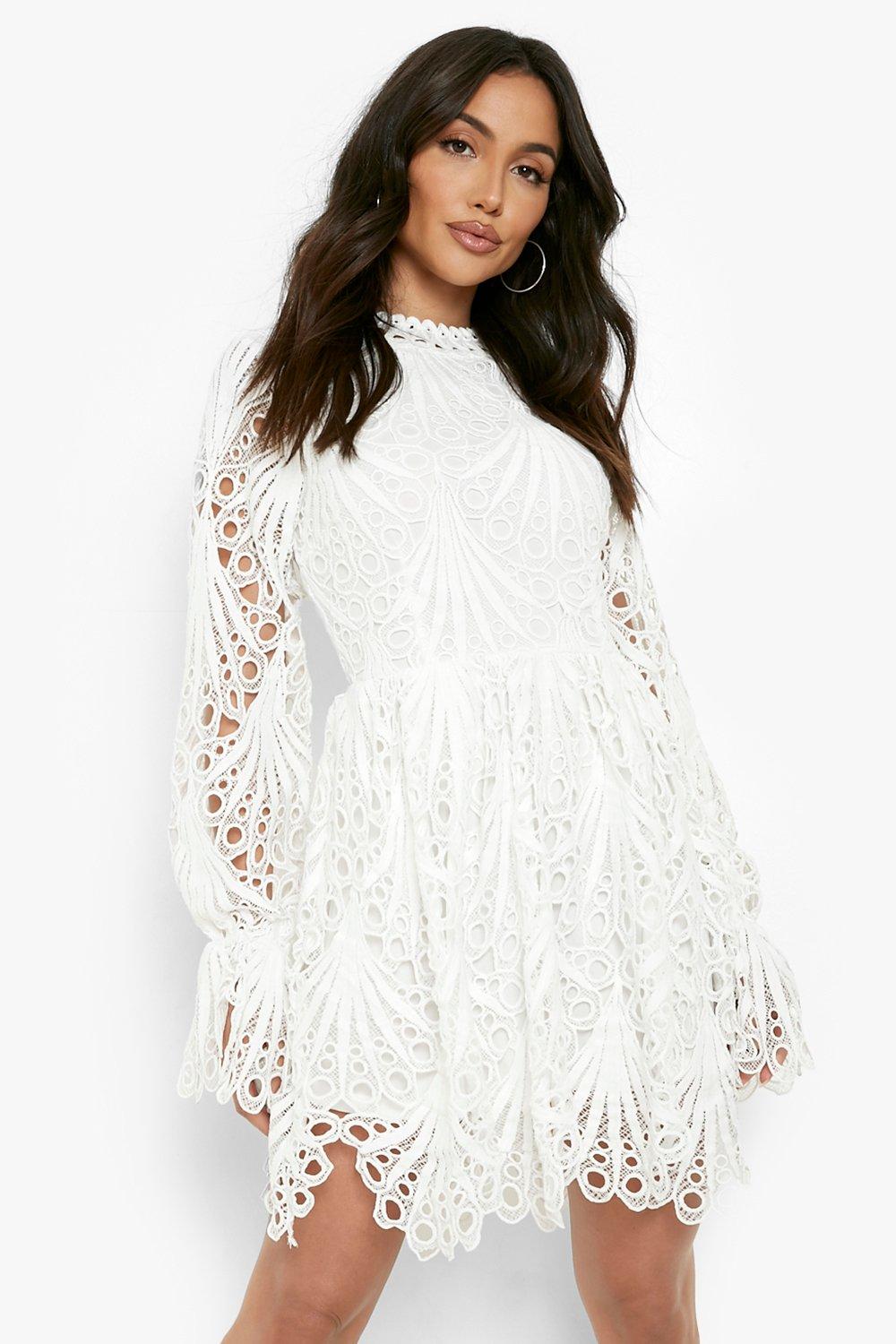 Boohoo flare sleeve lace dress in navy clearance, Women's Lace High Neck Long Sleeve clearance