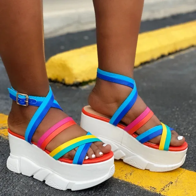 - Shopping Open toe buckle strappy platform platform sandals