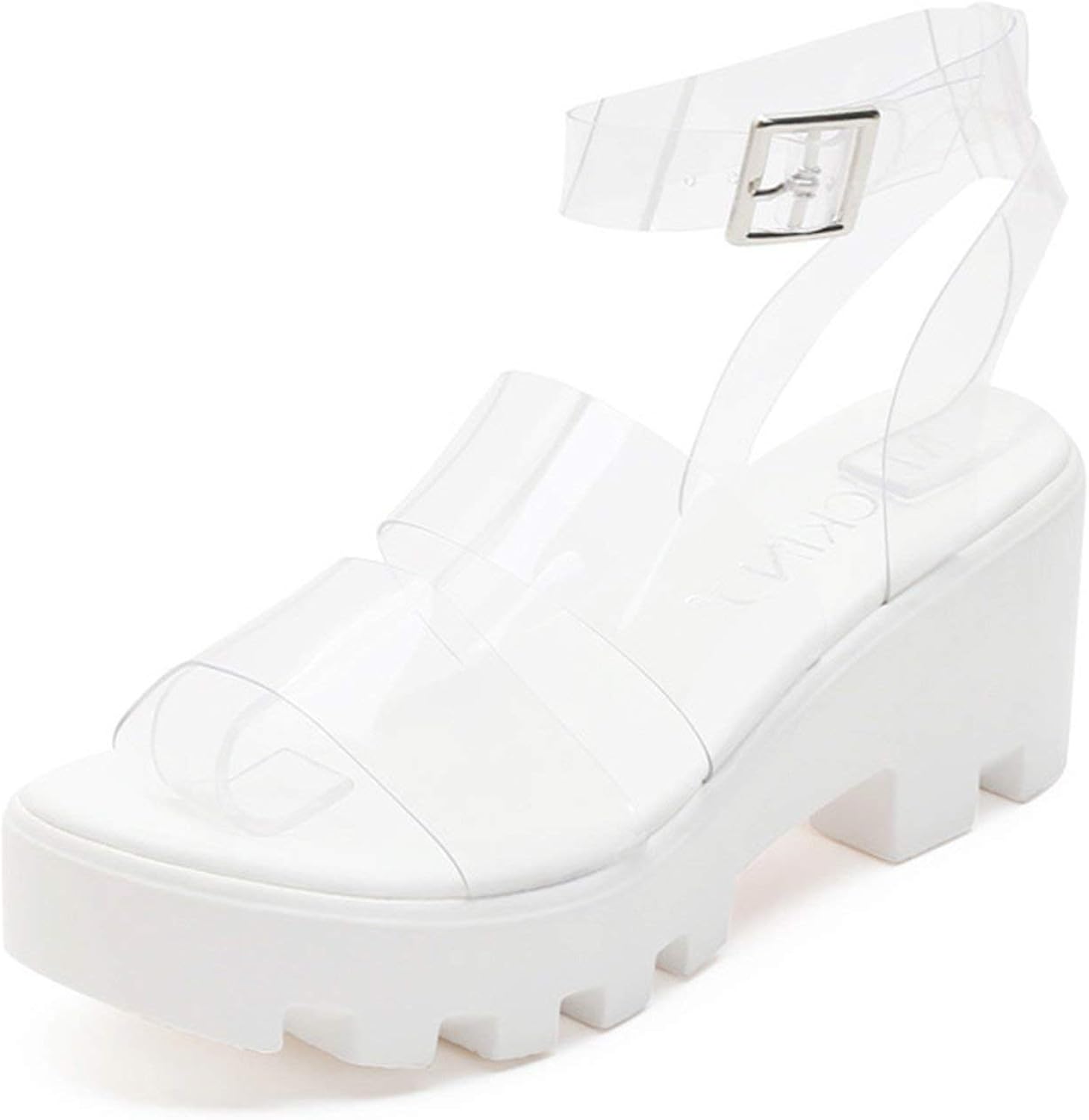 Open toe buckle strappy platform platform sandals clearance, MACKIN J 597-1 Clear Strappy Platform clearance