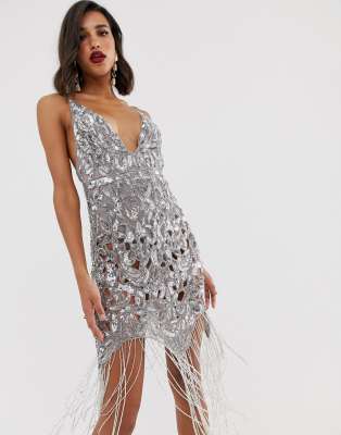 Vestito frange e paillettes clearance, Abito In Paillettes Con Frange di The clearance