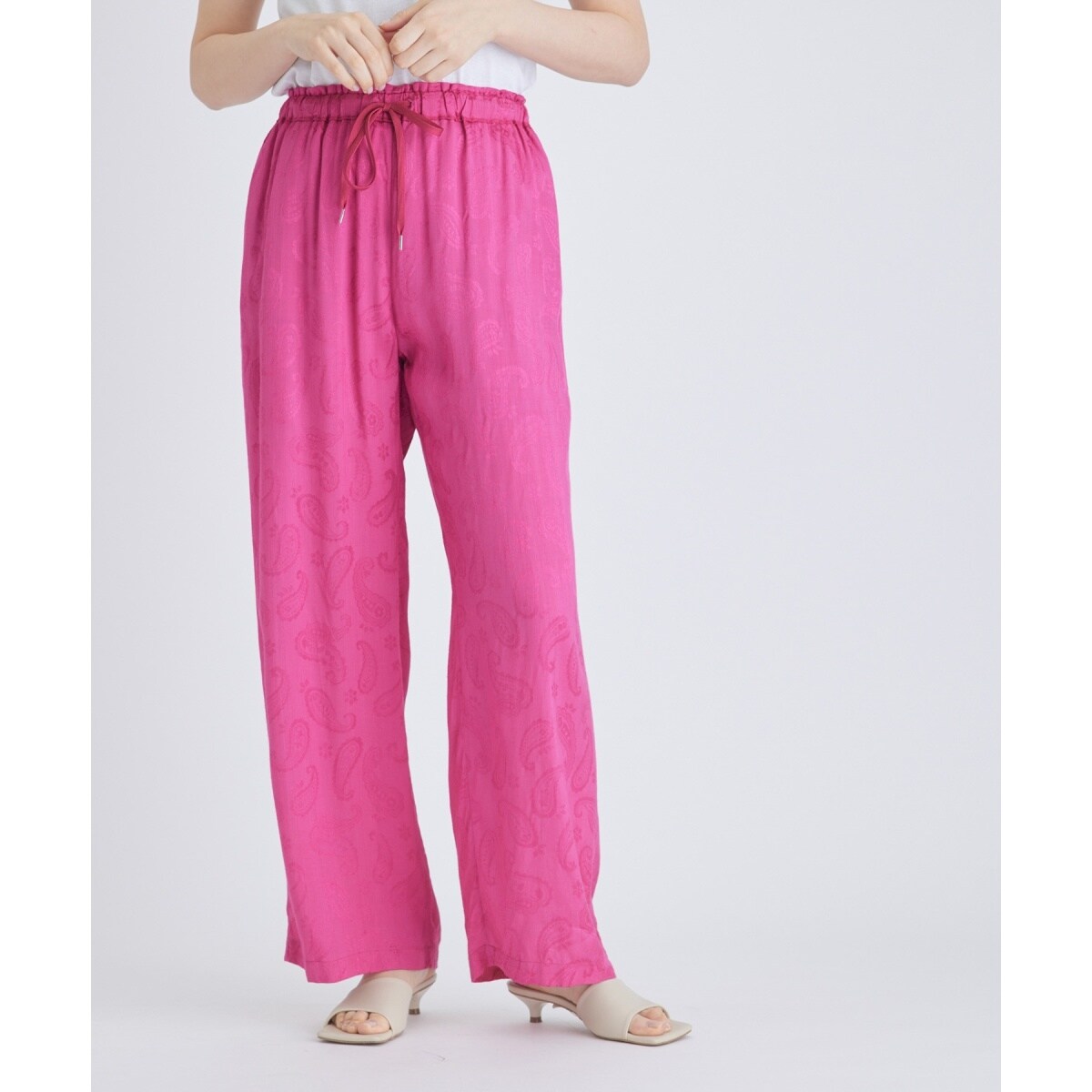 Rayon pants elastic waist clearance, Sara mallika】RAYON PAISLEY JACQUARD clearance