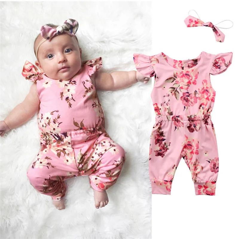Baby girl newborn summer clothes clearance, Kid Newborn Summer Clothes Toddler Baby Boy Girls Sleeveless Floral Cotton Romper+Headband clearance