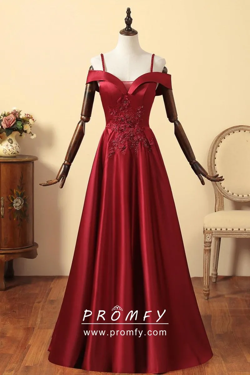 Crimson prom dress clearance, Beaded Floral Lace Appliqued Crimson clearance