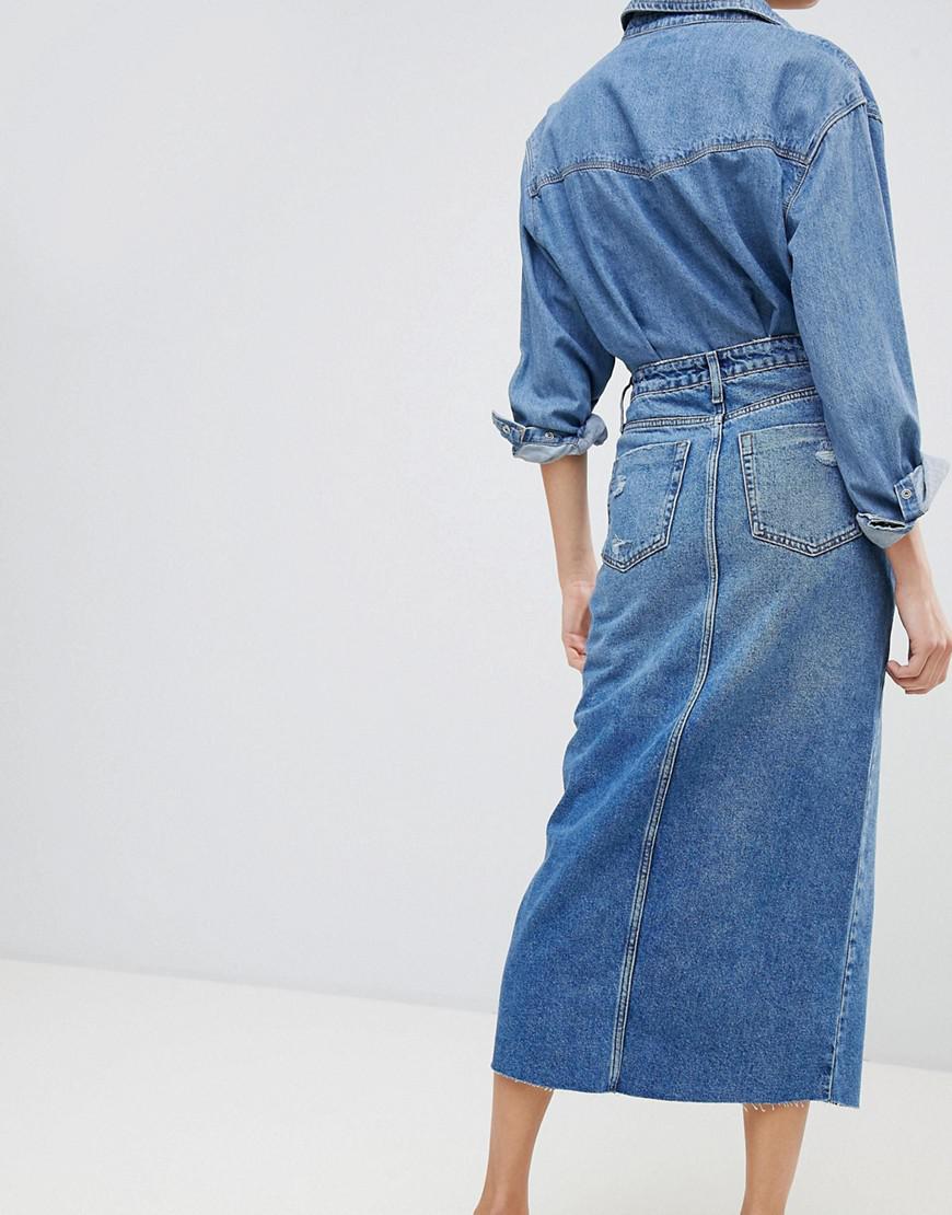 - River island denim midi dress shop