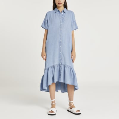 River island denim midi dress clearance, River Island belted denim midi shirt clearance