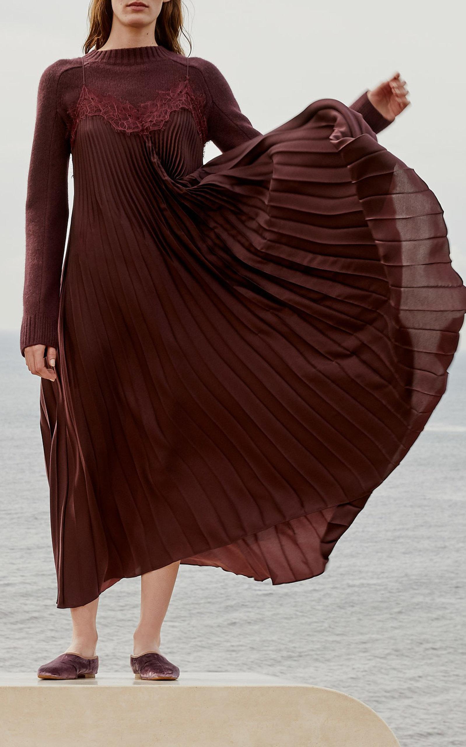 - Vince lace trim pleated dress sale online