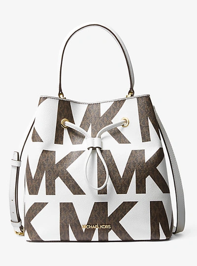 Suri large graphic logo clearance, Michael Kors Suri Large Bucket Bag Drawstring Brown Graphic Logo MK White Multi - ShopperBoard clearance
