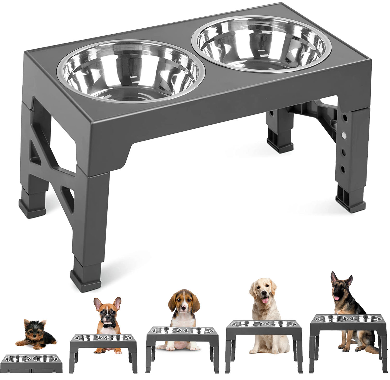 - Adjustable height dog food bowls sale