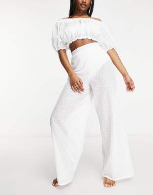 - White high waisted beach pants outlet