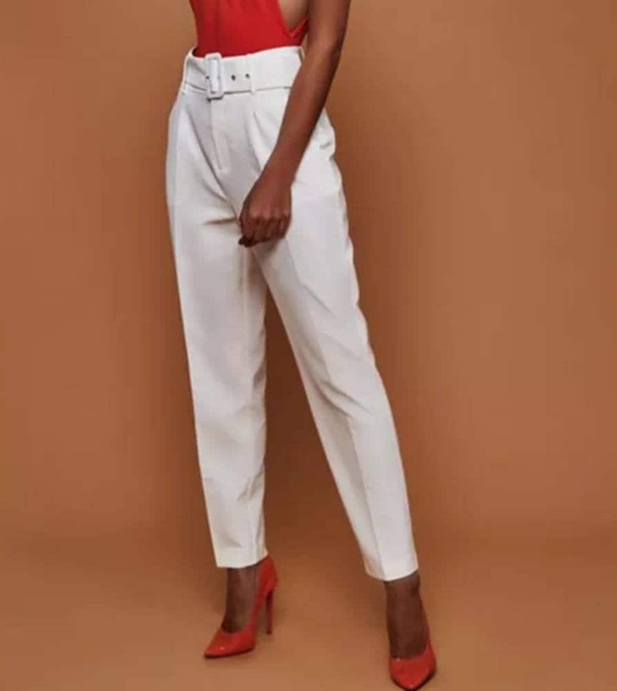 Belted white trousers clearance, White Belted Tailored Trouser clearance