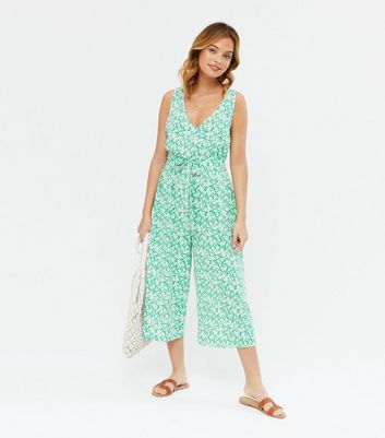 Petite green jumpsuit clearance, Petite Green Floral Tie Waist Crop clearance