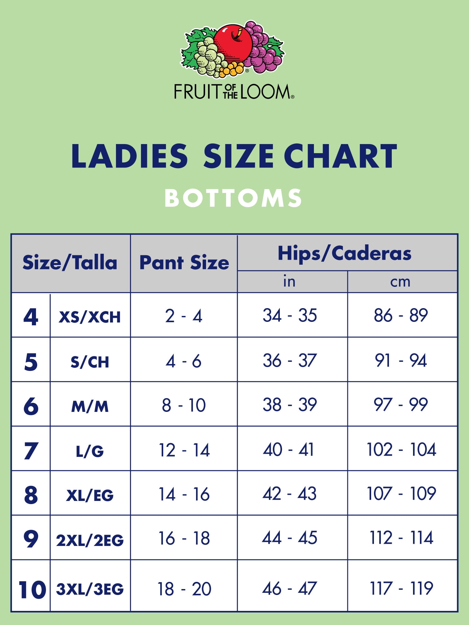 - Fruit of the loom panties size chart clearance