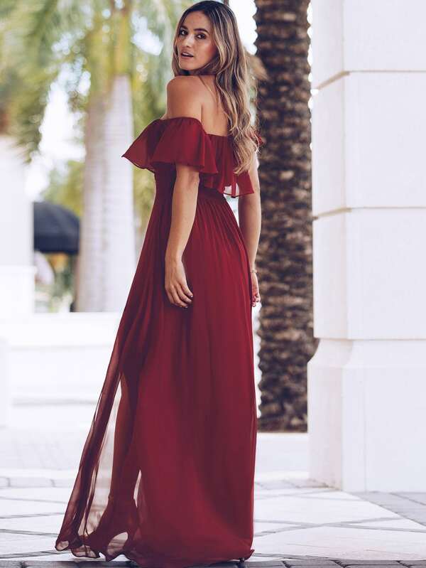 Burgundy dress shein clearance, Burgundy Ombre Halter Split Maxi Dress clearance