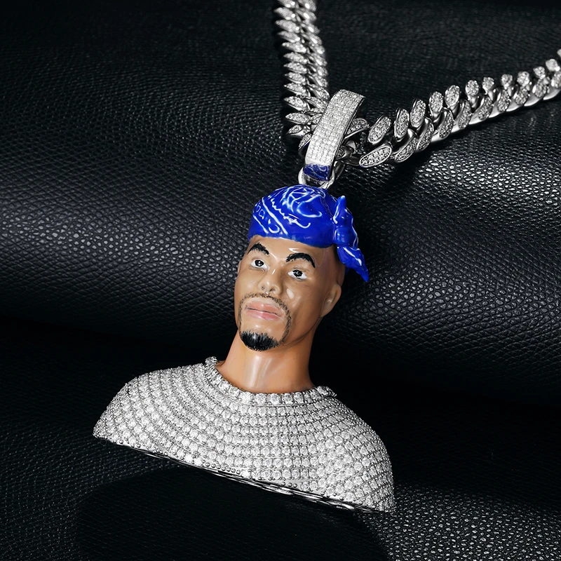 Diamond head pendant clearance, Top Quality 925 Sterling Silver D Color Moissanite Diamond Head Pendant Special Colorful Painted Men's Hip Hop Jewlery Rock Gift - AliExpress clearance