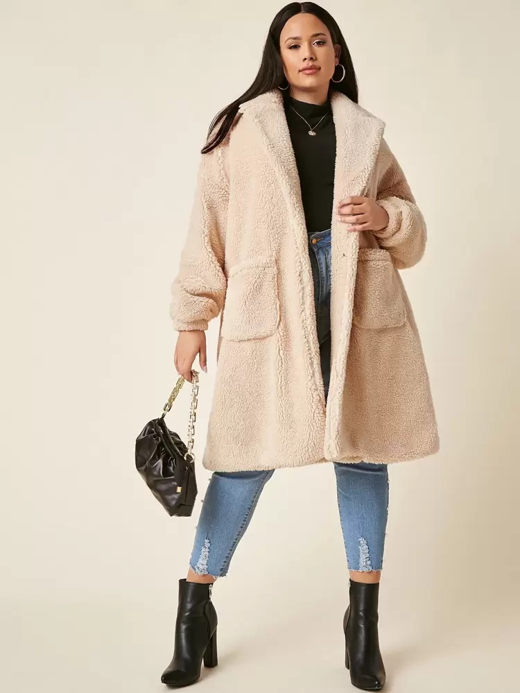 - Shein plus size teddy coat sale online