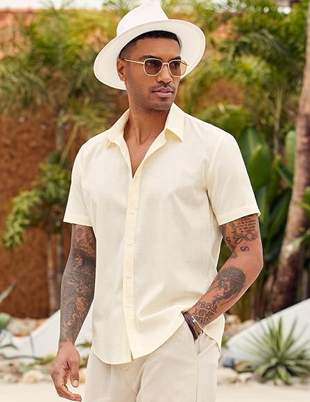 Leinen kurzarmhemd herren clearance, COOFANDY Leinen Hemden Herren Kurzarm Sommerhemd Buissnesshemd Strand-Hemd Casual Shirt Leinenhemd Herren Oberteile Button Down Hemd Creme Farben M : Amazon.de: Fashion clearance