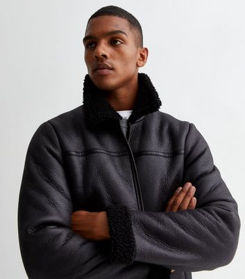 Aviator jacket herren clearance, Black Faux Shearling Aviator Jacket | New Look clearance