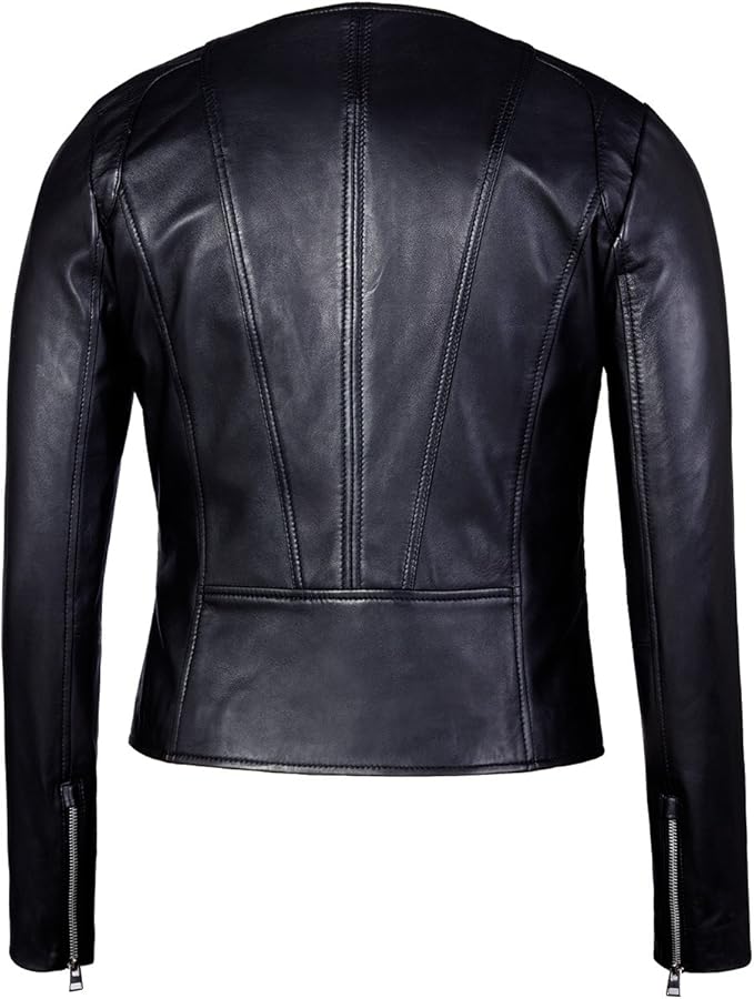 - Womens collarless black leather jacket free shipping
