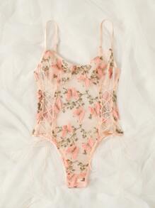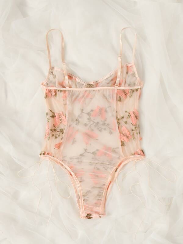 - Shopping Butterfly embroidered mesh teddy bodysuit