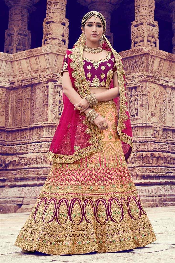 - Shopping Wine and peach bridal lehenga